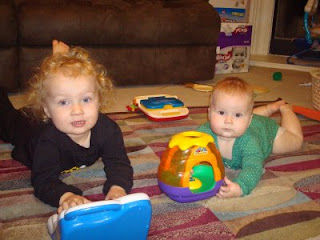 I love this picture of EZ and Netta. They really do love each other. EZ thinks everything Netta does is hilarious. And he cries for "Miss Netta" every time I put her to bed for a nap or for the night. Netta gets a huge smile everything she sees EZ and really excited when he interacts with her. She is getting so big and rolling all over the place as her means of transportation. EZ didn't crawl till 10 months, so we'll see when Netta will figure it out.